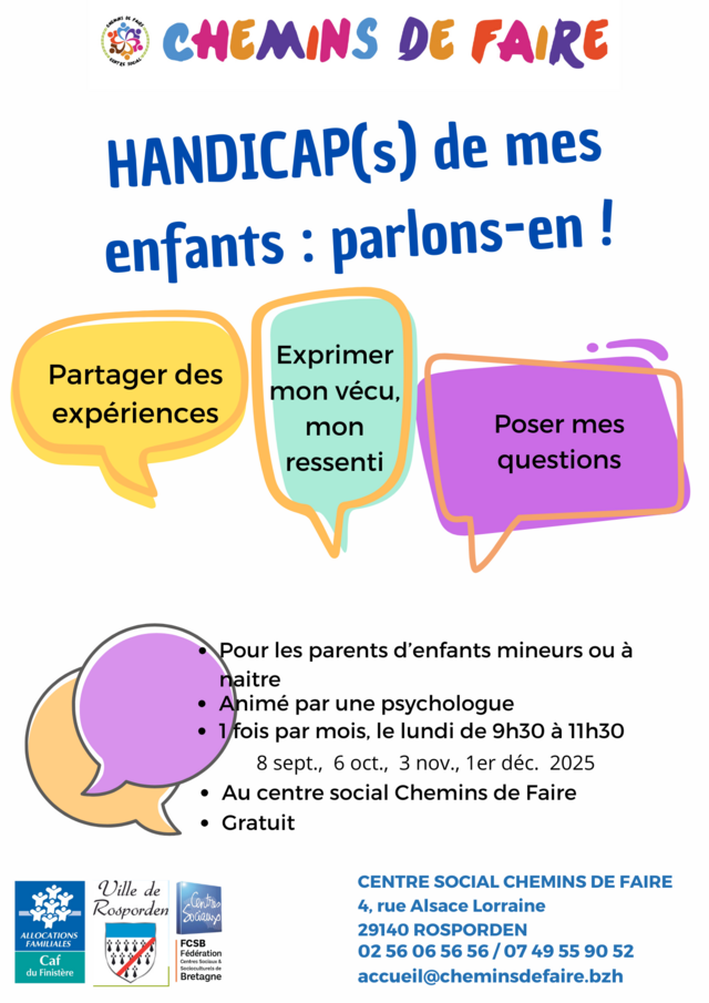 Le centre social Chemins de faire organise, de janvier à septembre un groupe de parole pour les parents, dont l’un ou les enfants sont en situation de handicap.