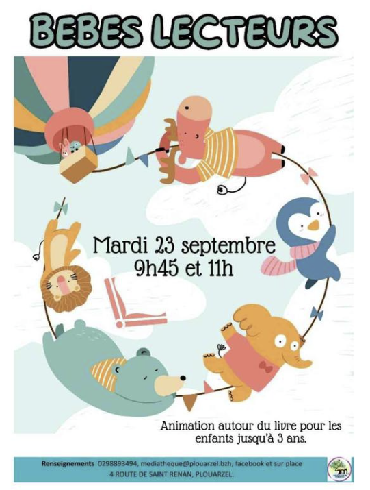 Bébés lecteurs à Plouarzel Mardi 23 septembre 2025 | Catégories : Autour de la naissance, Autour de l’enfance Description La médiathèque de Plouarzel propose deux séances bébés lecteurs Mardi 23 septembre à 9h45 et 11h Localisation Médiathèque - Plouarzel