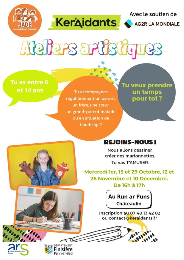 Ker’Aidants propose aux jeunes aidants et aux jeunes adultes aidants de participer à des ateliers artistiques animés par Céline Cousin Expression’L, sous le label Jeunes AiDants Ensemble et grâce au soutien de Aidons les nôtres - AG2R LA MONDIALE
