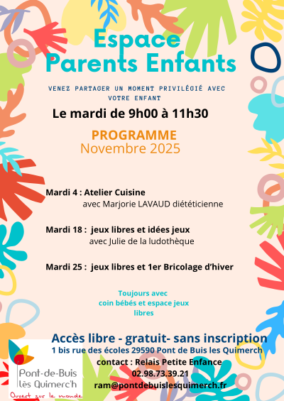 contact : Relais Petite Enfance 02.98.73.39.21 / ram@pontdebuislesquimerch.