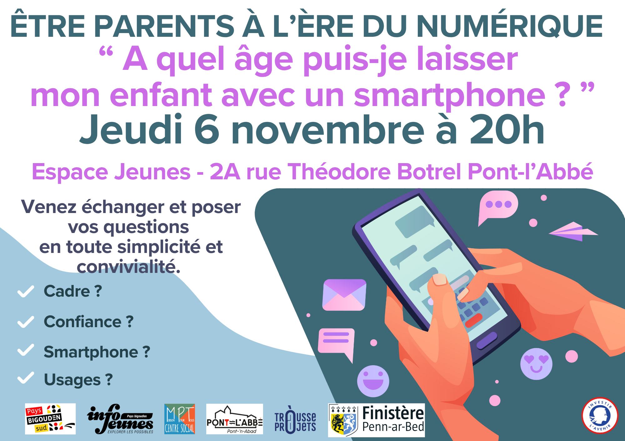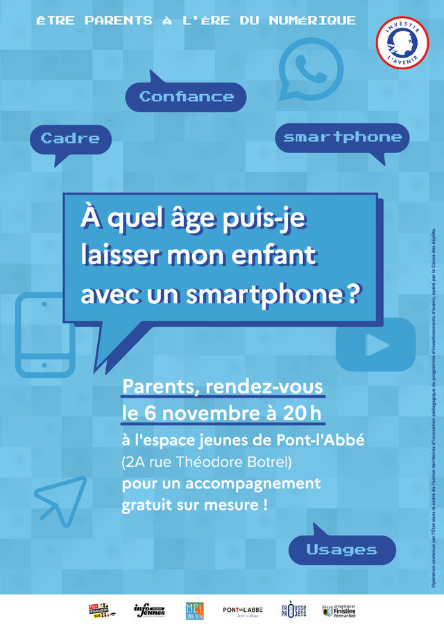 Atelier à destination des parents (gratuit) : le jeudi 6 novembre à partir de 20h à l’espace jeunes de Pont l’Abbé (2A rue Théodore Botrel, 29120 Pont l’Abbé).