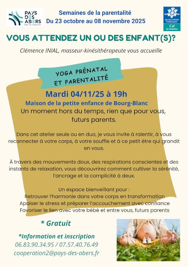 18h30 - Yoga prénatal et parentalité - Maison de la petite enfance Bourg Blanc