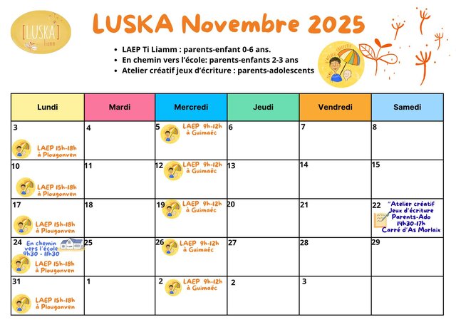 Le lieu d’accueil enfant parent Ti Liamm animé par Luska reçoit les enfants de 0 à 6 ans et leurs parents pour des moments de jeu, d’échange et d’exploration.
