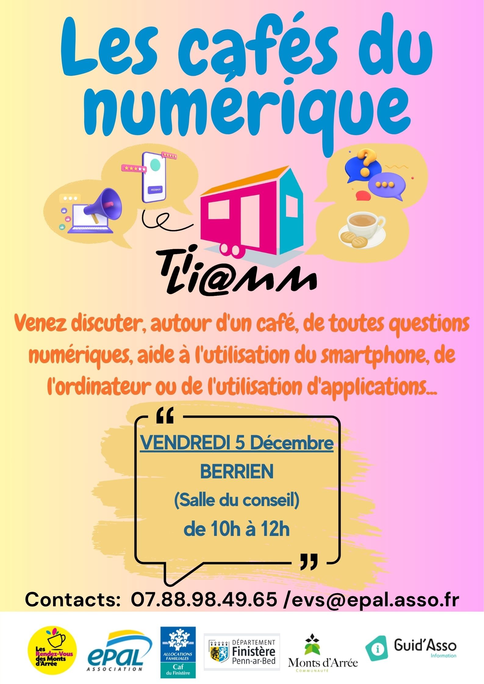 Les Rendez-vous des Monts d’Arrée organisent les cafés du numériques : pour discuter autour d’un café de toutes questions liées au numérique : aide à l’utilisation du smartphone, ordinateurs, applications...