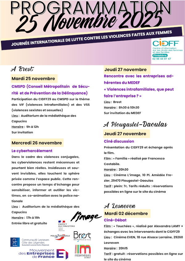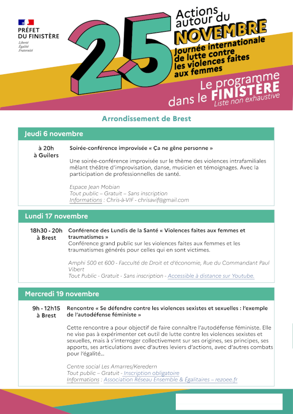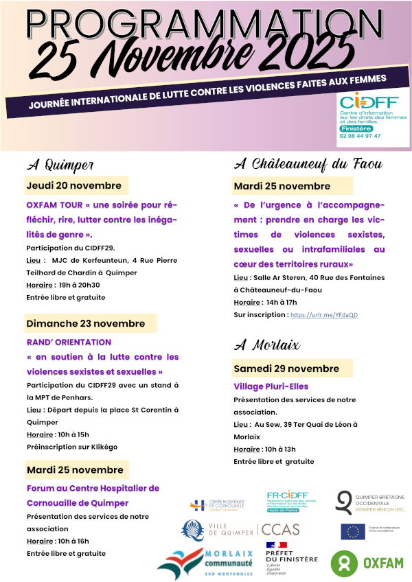 le CIDFF 29 ainsi que diverses associations du département proposent plusieurs rendez-vous.