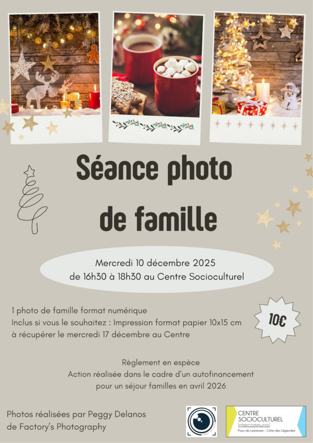 Le centre socioculturel intercommunal Pays de Lesneven - Côte des légendes propose une séance photo de famille avec la photographe Peggy Delanos de Factory’s Photography