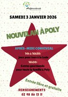 Nouvel an à Poly : jeux et contes à Châteaulin Samedi 3 janvier | Catégories : Autour de la petite enfance, Autour de l’enfance, Autour de la jeunesse, Sortir en famille Description Polysonnance à Châteaulin organise un après-midi convivial avec des jeux et des contes samedi 3 janvier 2026 Localisation Polysonnance - Châteaulin