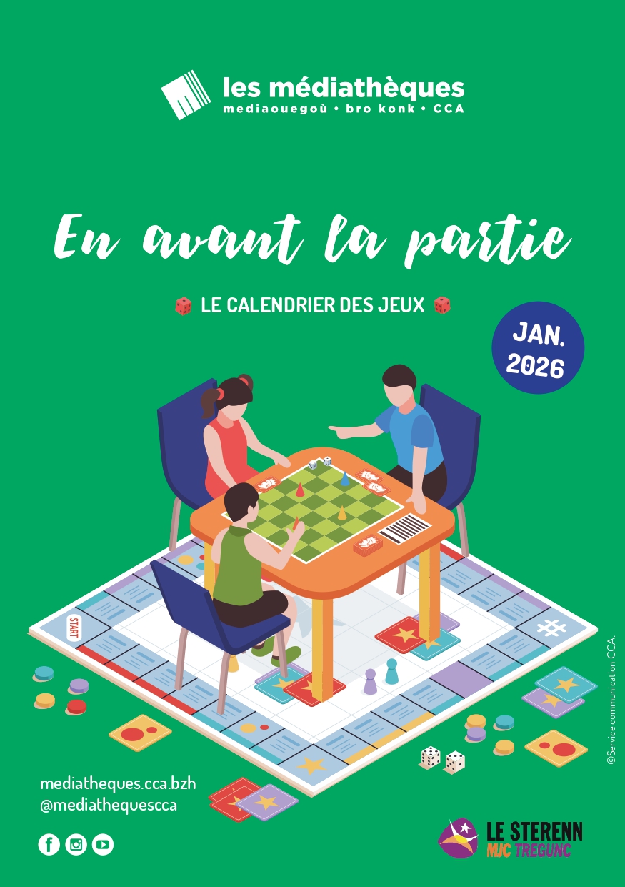 – Soirée jeux - vendredi 16 janvier 2026 de 19h à 23h au Sterenn. Ouvert à toutes les personnes à partir de 6 ans. "Venez découvrir la nouvelle sélection de notre ludothécaire, seul.e, en famille ou entre ami.e.s ! Sur le principe de l’auberge espagnole : apportez un plat salé ou sucré à partager ensemble, sur le pouce."
