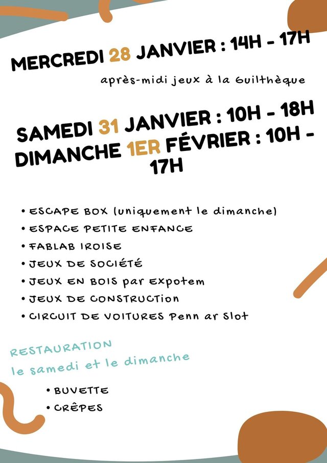 Samedi 31 janvier de 10h à 18h et dimanche 1er février de 10h à 17h00 : Guilers entre en jeux ! Édition 2026