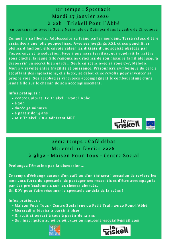 À la suite de la programmation du spectacle circassien "La Pointe du Compas" au Centre Culturel Le Triskell à Pont l’Abbé le mardi 27 janvier prochain à 20h,
