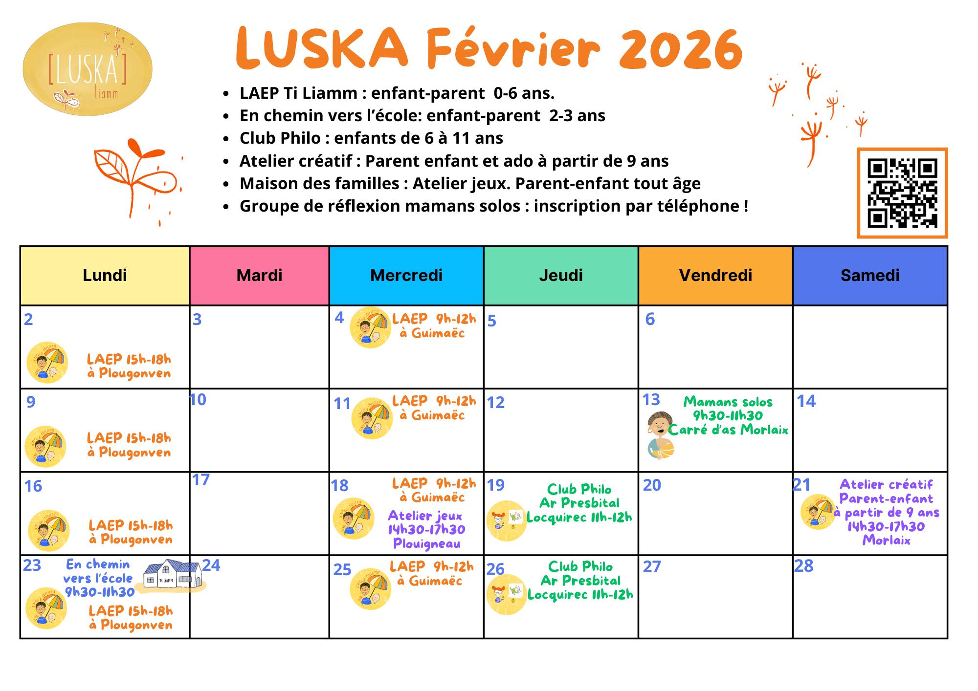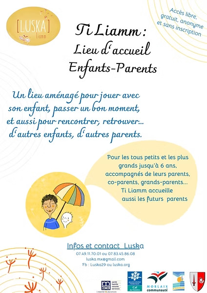 Le lieu d’accueil enfant parent Ti Liamm animé par Luska reçoit les enfants de 0 à 6 ans et leurs parents pour des moments de jeu, d’échange et d’exploration.