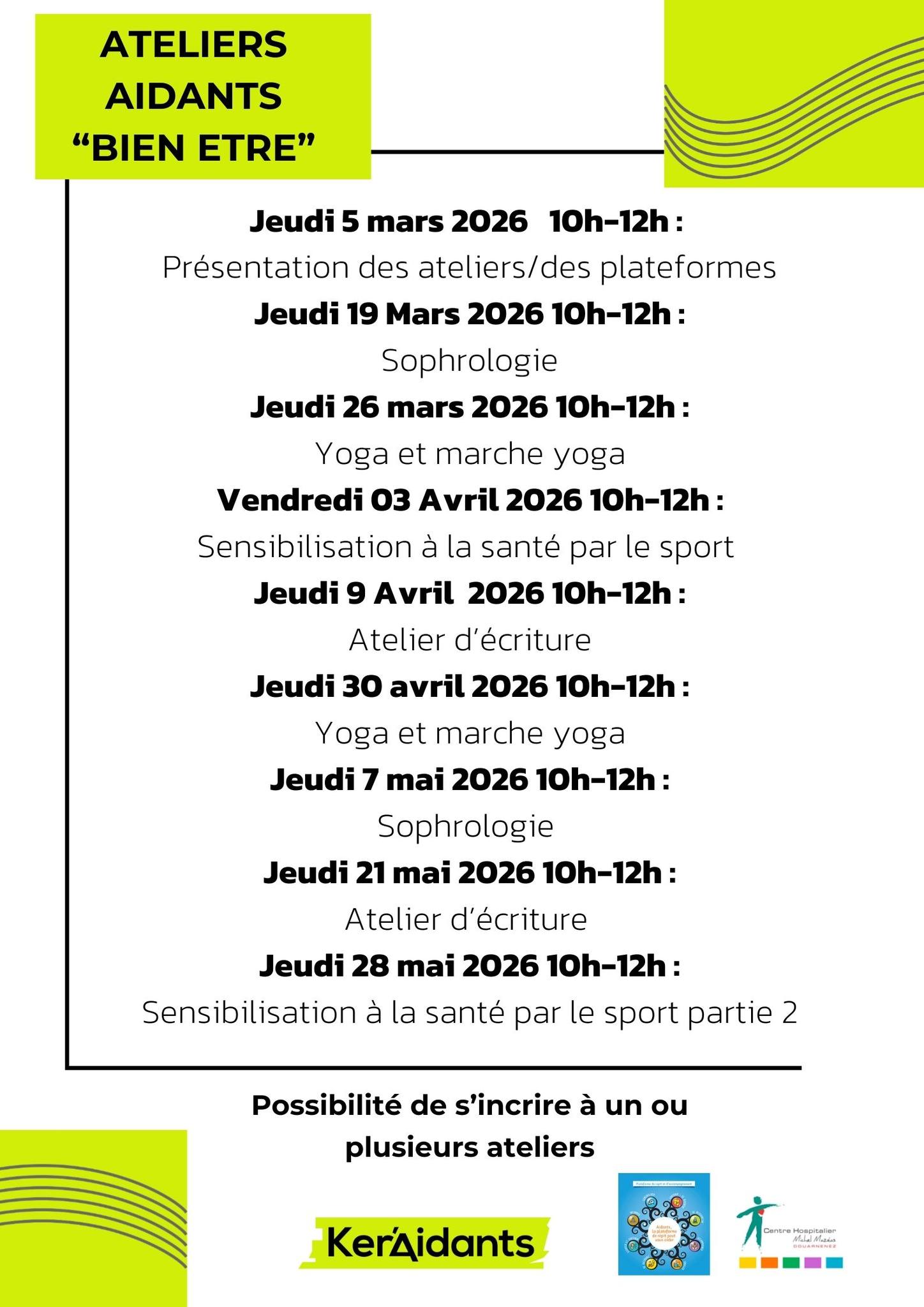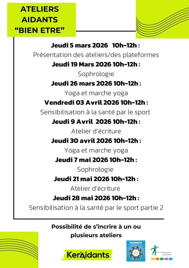 Ker’aidants met en place pour les personnes aidantes d’un proche âgé, en situation de handicap ou en perte d’autonomie des ateliers santé et bien-être.