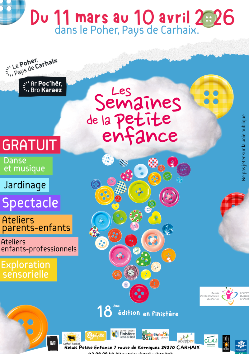 Les Semaines de la petite enfance se déroulent sur l’ensemble du Finistère en mars et avril 2026 avec des projets artistiques et culturels pour découvrir et s’émerveiller avec des temps pour les enfants et les parents et des temps que pour les parents.