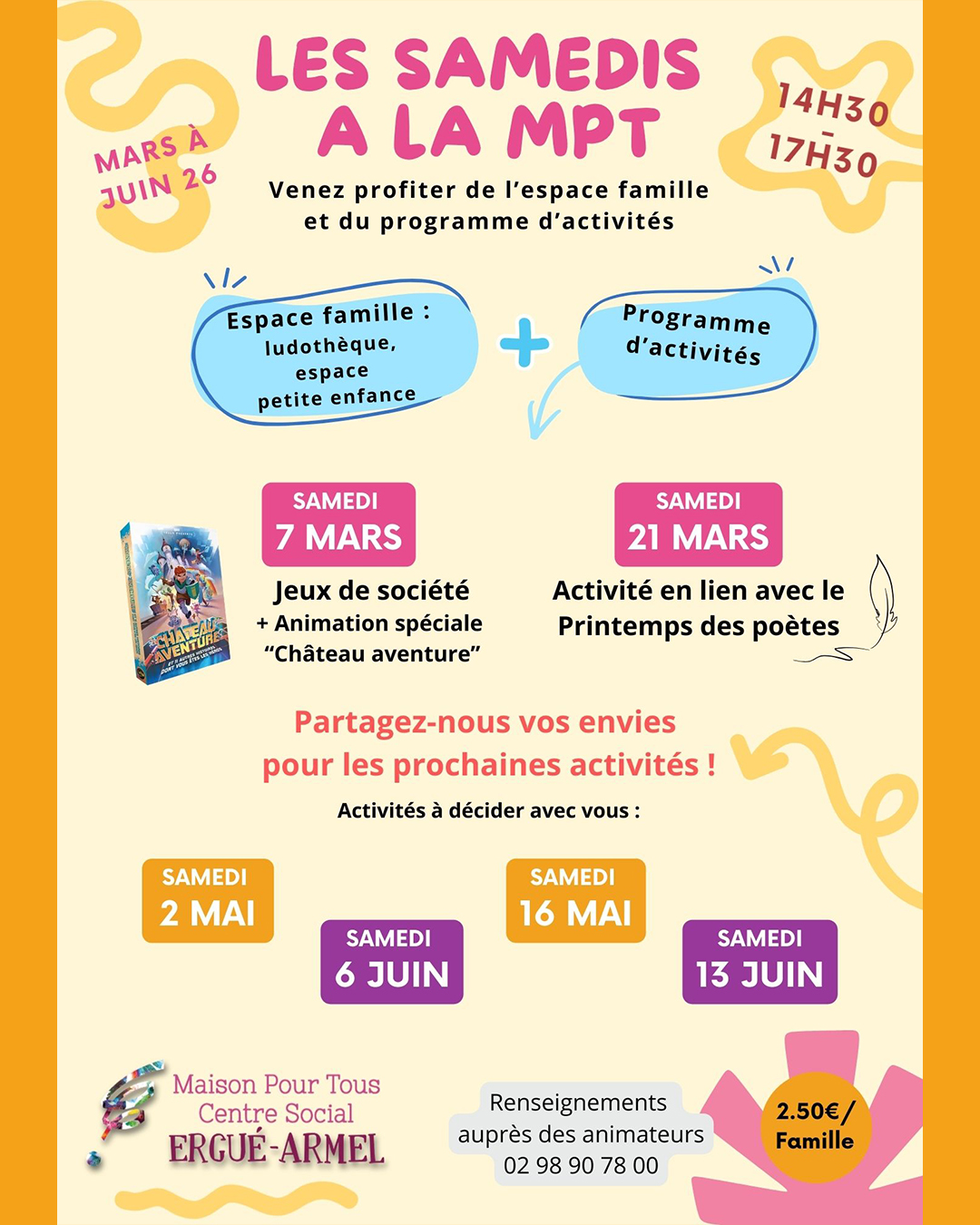 Renseignements à l’accueil de la MPT : 02.98.90.78.00 / 16 av. Georges Pompidou - Quimper