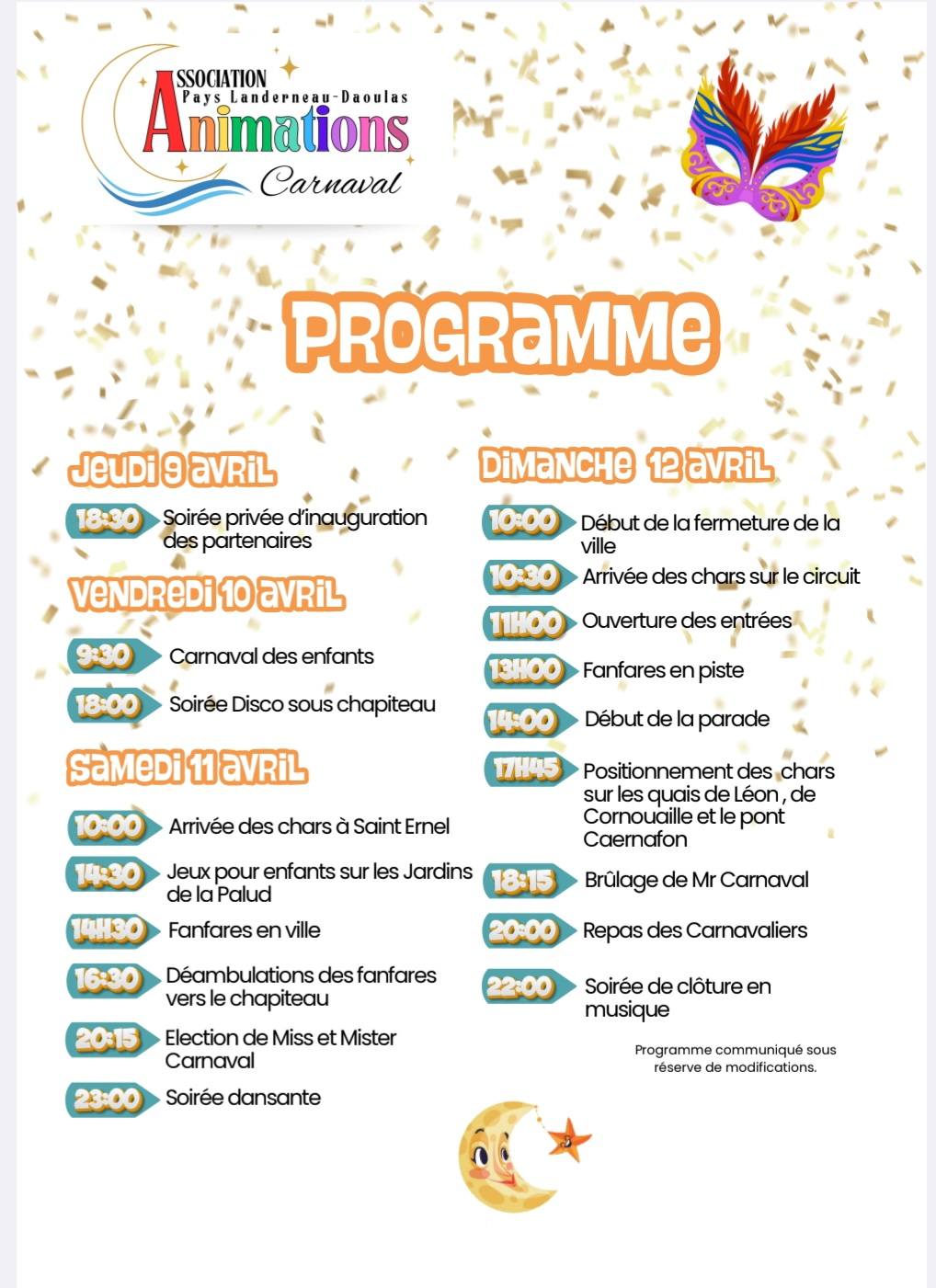 Les 10, 11 et 12 avril Landerneau se met sous le signe du carnaval avec Le carnaval de la lune étoilée