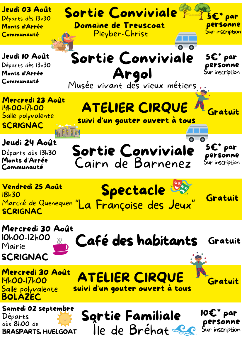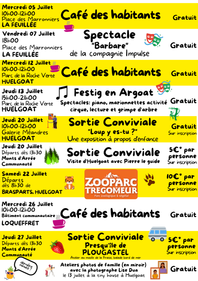 L’espace de vie social "Les rendez-vous des Montes d’Arrée" propose de nombreux rendez-vous : café des habitants, sorties conviviales, spectacles, ateliers... en juillet et août.