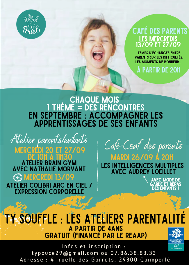 L’association Ty Pouce à Quimperlé propose Ty souffle, des ateliers parentalité avec ateliers parents/enfants et un café conférence.