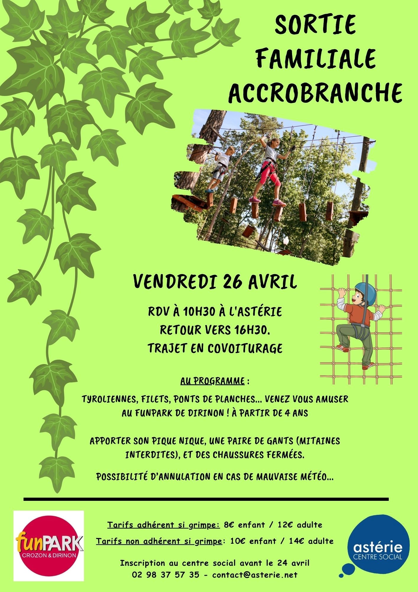 Sortie Accrobranche avec l’Astérie Vendredi 26 avril 2024 | Catégories : Sortir en famille Description L’Astérie propose une sortie famille accrobranche.