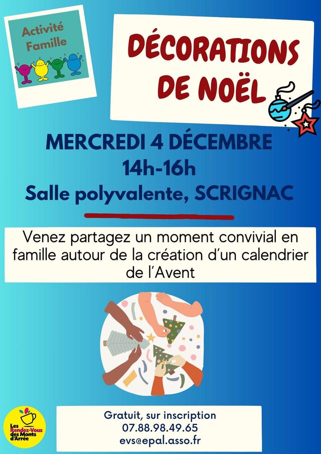– Mercredi 4 décembre de 14h à 16h à la salle polyvalente de Scrignac - Création d’un calendrier de l’Avent
