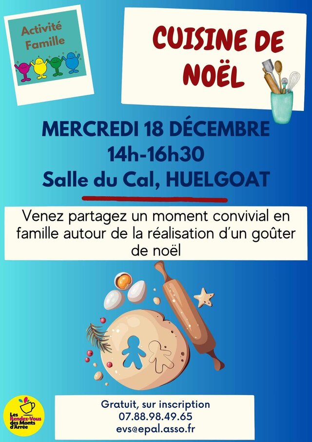 – Mercredi 18 décembre de 14h à 16h30 à la salle du Cal à Huelgoat - Cuisine de Noël