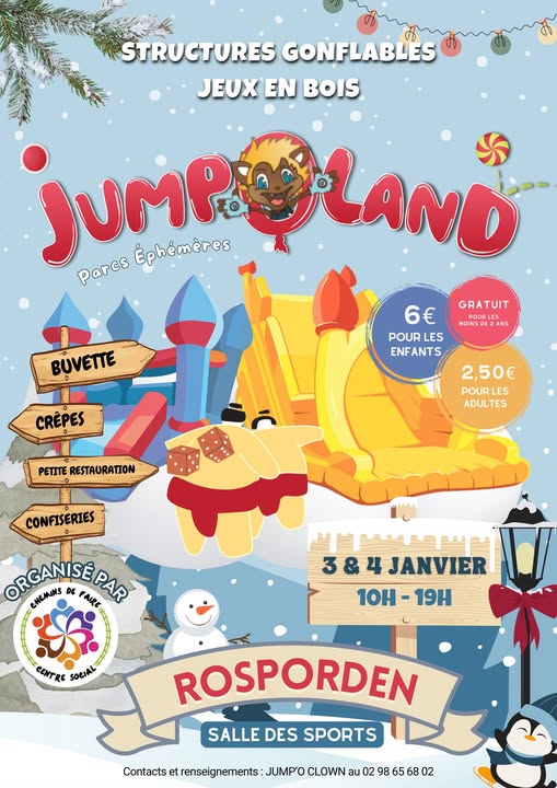 Jumpoland, parc éphémère avec des structures gonflables et jeux en bois s’installe à la salle des sports de Rosporden vendredi 3 et samedi 4 janvier 2025.