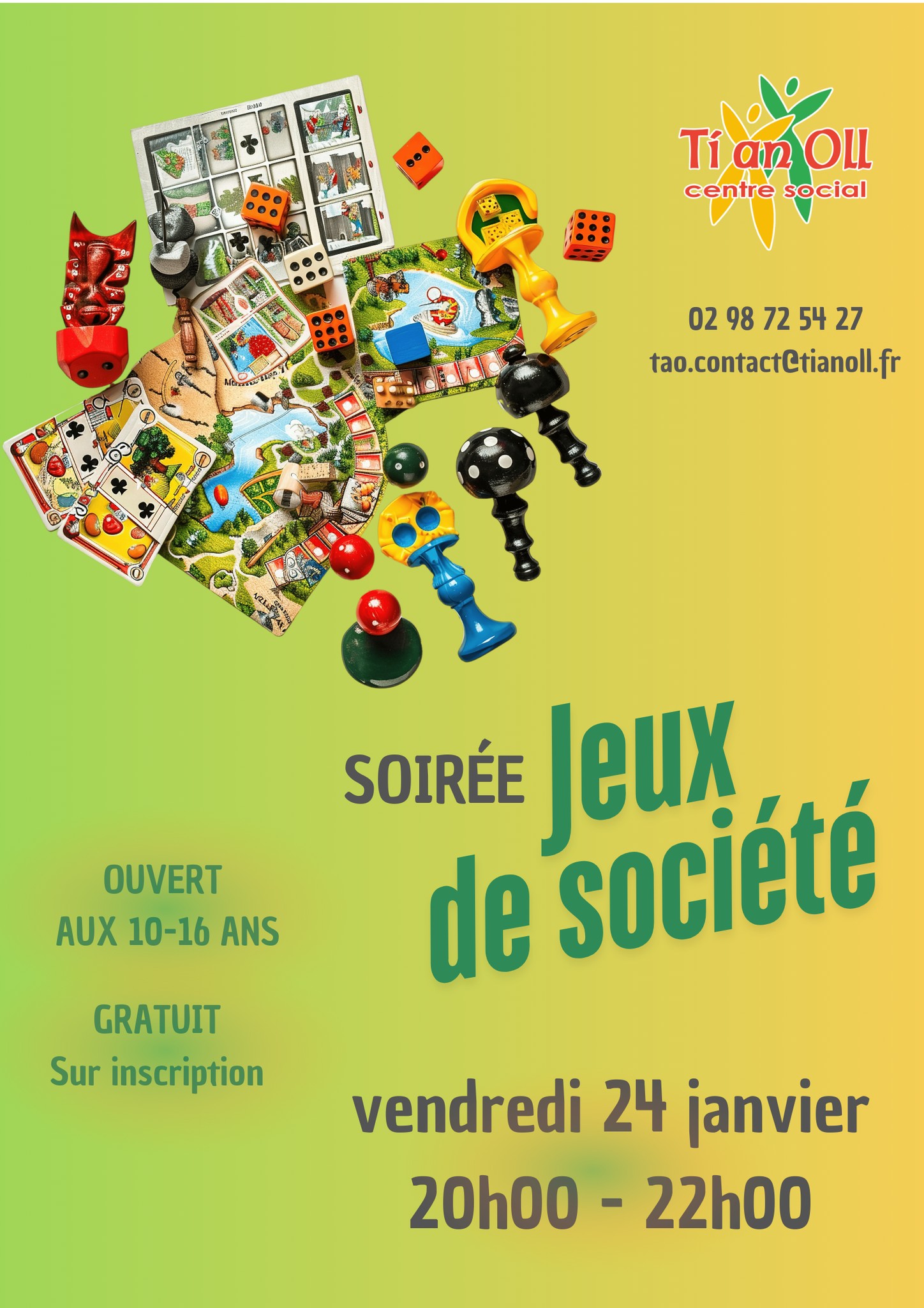Le centre social Ti An Oll à Plourin Les Morlaix organise une soirée Jeux de société ouverte aux 10/16 ans